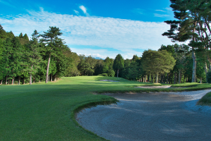 フェアウェイ左に持っていくと松の木が邪魔になり、グリーンが狙いにくい。