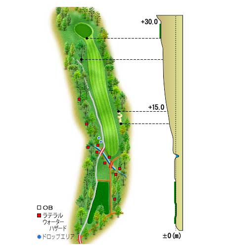 ティーショットは左ラテラル・ウォーターハザードに注意。